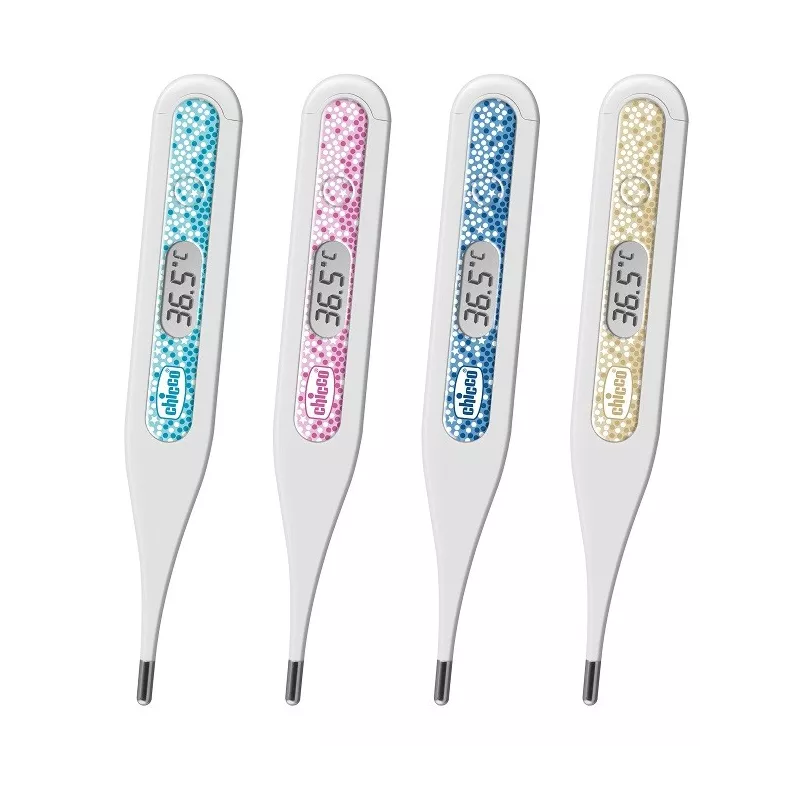 Termometro digitale pediatrico colorato che misura la temperatura del bambino in tre diverse modalità, ascellare, orale e rettale in 60 secondi.