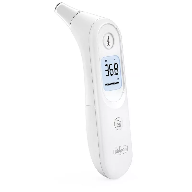 Il termometro auricolare ad infrarossi di Chicco rileva la temperatura, dal timpano, in circa 1 secondo fornendo una misurazione veloce ed accurata. Lettura della temperatura in °C o °F.
