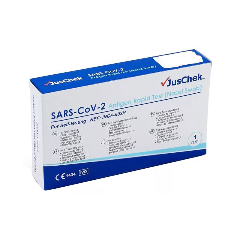 Test monouso destinato a rilevare la SARS-CoV-2 che causa il COVID-19 con campioni di tampone nasale raccolti autonomamente da individui sintomatici che si sospetta siano infetti da COVID-19.