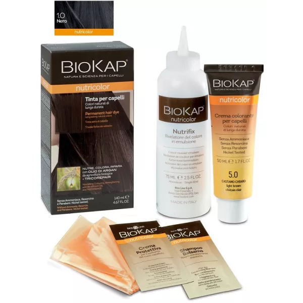 Biokap Nutricolor Tinta per la colorazione e la bellezza dei capelli. La formula a base di ingredienti vegetali e ad alta tollerabilità cutanea nutre e ripara i capelli mentre li colora e copre i capelli bianchi.