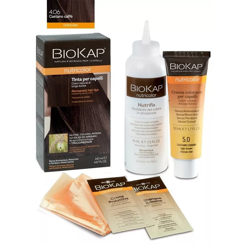 Biokap Nutricolor Tinta per la colorazione e la bellezza dei capelli. La formula a base di ingredienti vegetali e ad alta tollerabilità cutanea nutre e ripara i capelli mentre li colora e copre i capelli bianchi.