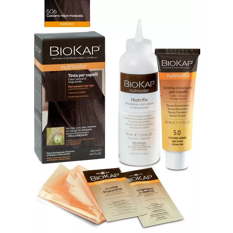 Biokap Nutricolor Tinta per la colorazione e la bellezza dei capelli. La formula a base di ingredienti vegetali e ad alta tollerabilità cutanea nutre e ripara i capelli mentre li colora e copre i capelli bianchi.