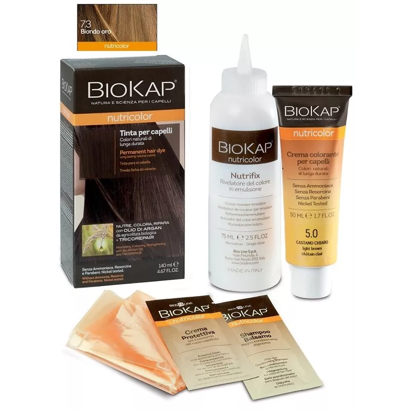 Biokap Nutricolor Tinta per la colorazione e la bellezza dei capelli. La formula a base di ingredienti vegetali e ad alta tollerabilità cutanea nutre e ripara i capelli mentre li colora e copre i capelli bianchi.