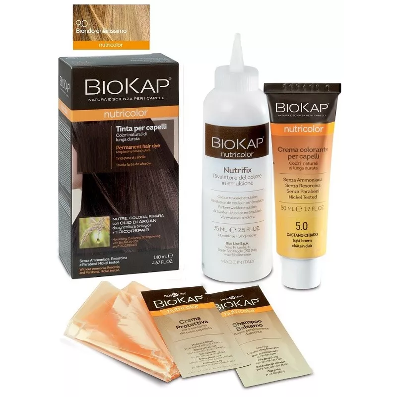 Biokap Nutricolor Tinta per la colorazione e la bellezza dei capelli. La formula a base di ingredienti vegetali e ad alta tollerabilità cutanea nutre e ripara i capelli mentre li colora e copre i capelli bianchi.