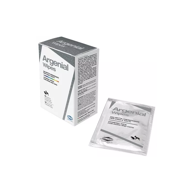 Salviette umnidificate igienizzanti monouso con argento colloidale per cani e gatti, utili per la detersione e l'igiene profonda del contorno occhi. Sono anche utili per igienizzare a fondo padiglione auricolare, naso, bocca, area genitale e le zone più difficili da raggiungere come spazi interdigitali e pliche cutanee