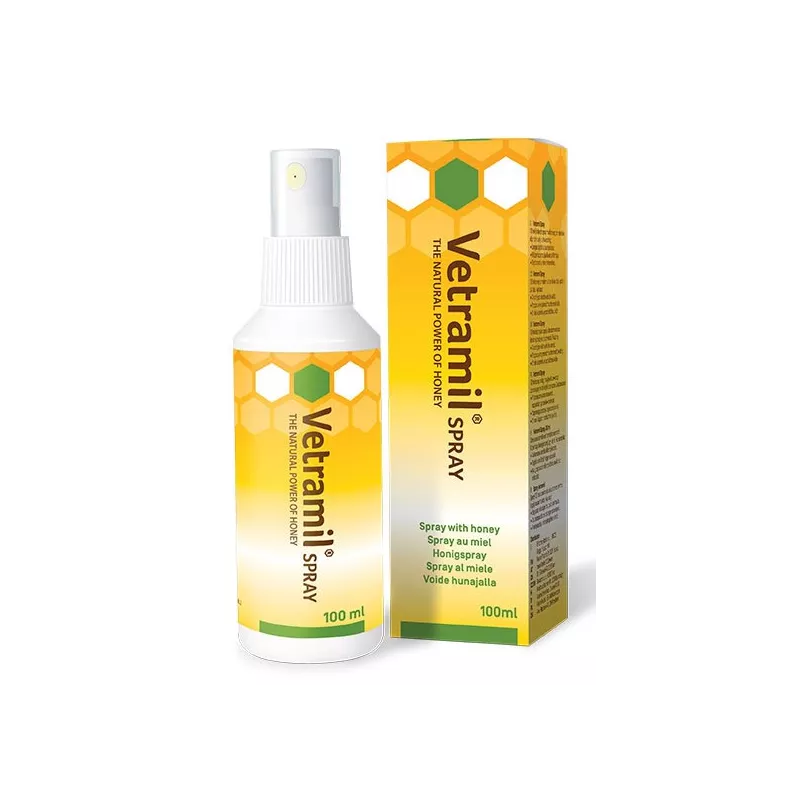 Vetramil Spray 100 ml, agisce come coadiuvante nella riparazione di lesioni superficiali, post sutura e dermatiti. Pratico formato per aree di difficile raggiungimento. Vetramil Spray pur contenendo gli stessi componenti dell'unguento è maggiormente indicato per l'aspersione ed una più omogenea distribuzione su aree di difficile accesso e su animali difficilmente avvicinabili.