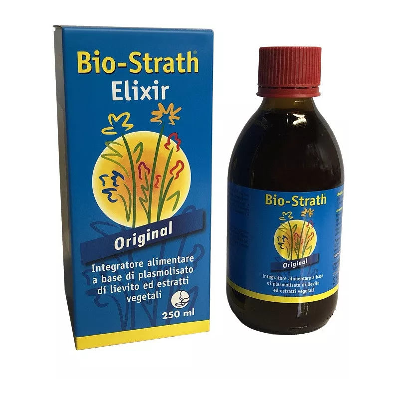 Ingredienti Plasmolisato di lievito Strath polvere (Saccharomyces cerevisiae Meyen, Angelica archangelica L. estratto radice, Melissa officinalis L. estratto parti aeree, Lavandula officinalis Chaix estratto fiori, Salvia officinalis L. estratto foglie, Thymus vulgaris L. estratto foglie), malto d’orzo, sciroppo di arancia, miele.