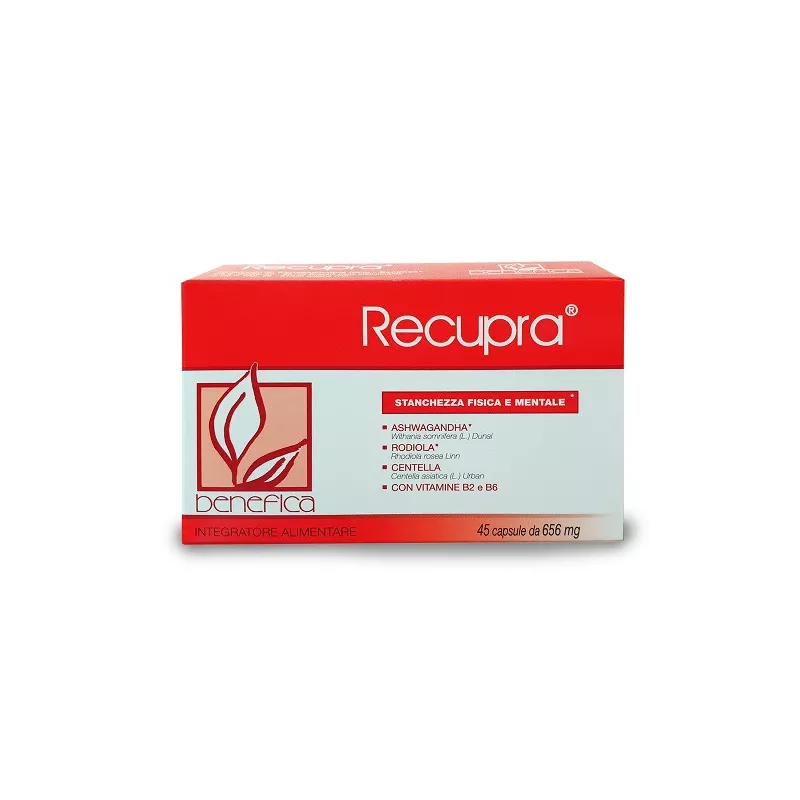 Ingredienti Ashwagandha [Withania somnifera (L.) Dunal, radice] e.s. tit. al 2,5% withanolidi, rodiola (Rhodiola rosea L., radice) e.s. tit. al 3% rosavine, involucro capsula (agente di rivestimento: idrossipropil metil cellulosa); agente di carica: fosfato di calcio; centella [Centella asiatica (L.) Urb., parti aeree] e.s. tit. al 20% in triterpeni totali; agenti antiagglomeranti: biossido di silicio (nano), sali di magnesio degli acidi grassi; vitamina B6 (cloridrato di piridossina), vitamina B2 (riboflavina).