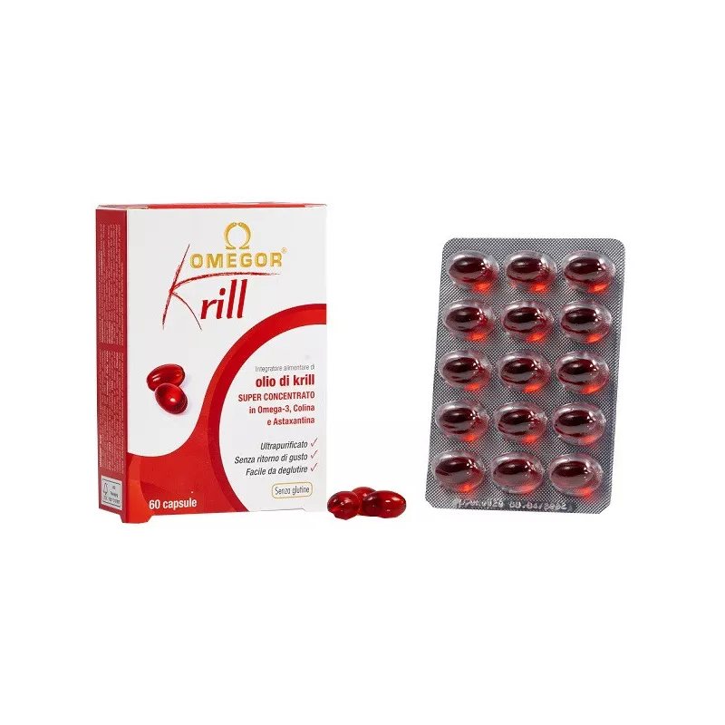 Integratore alimentare di puro estratto lipidico del crostaceo krill antartico (Euphausia superba) ricco in omega-3 EPA e DHA (260 mg x 2cps), fosfolipidi (660 mg x 2 cps), colina (82,6 mg x 2 cps) ed astaxantina (100 mcg x2 cps).