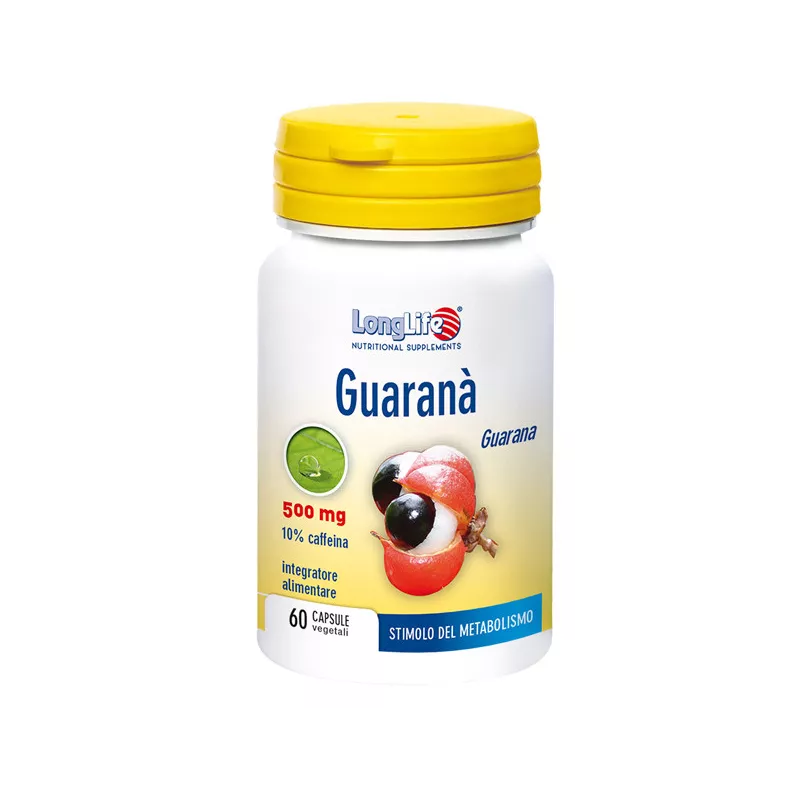 Descrizione Integratore alimentare di guaranà con estratto titolato al 10% in caffeina, tonico stimolante del metabolismo, utile in caso di stanchezza fisica e mentale, per il metabolismo dei lipidi e per l'equilibrio del peso corporeo. Adatto a vegetariani e vegani.