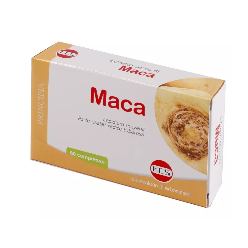 Descrizione Integratore alimentare a base di estratto secco di Maca, indicata come tonico-adattogeno (stanchezza fisica, mentale), azione tonica e di sostegno metabolico.