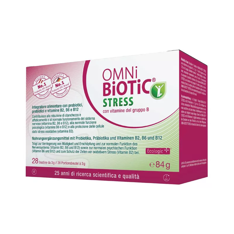 Modalità d'uso Sciogliere 1 bustina di OMNi-BiOTiC STRESS con vitamine del gruppo B (3 g) 1-2 volte al giorno in circa 125 ml di acqua, attendere almeno 1 minuto (tempo di attivazione), mescolare nuovamente prima di bere. Si raccomanda di assumere il prodotto a stomaco.