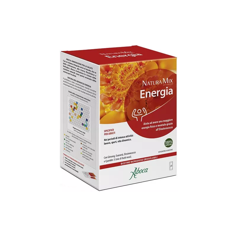 Descrizione Integratore alimentare a base di ginseng, guaranà, eleuterococco e Cyanidin-3 (mix di frutti rossi), utile per avere una maggiore energia fisica e mentale, contribuire all’attività adattogena, svolgere un'azione antiossidante e per le naturali difese dell'organismo. Indicato durante i periodi di intenso studio e lavoro e per chi pratica sport.
