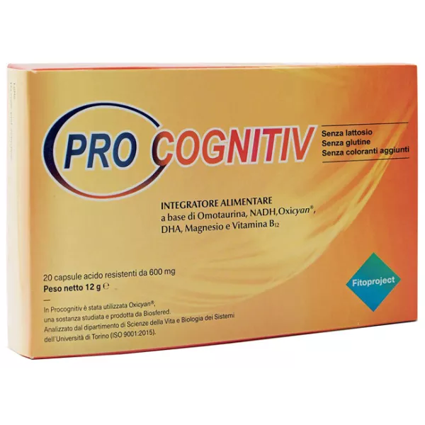Descrizione Integratore alimentare a base di omotaurina, NADH, Oxicyan e DHA, utile al mantenimento della normale funzione cerebrale, magnesio e vitamina B12, sostanze utili alla riduzione della stanchezza e dell'affaticamento mentale e al normale funzionamento del sistema nervoso.