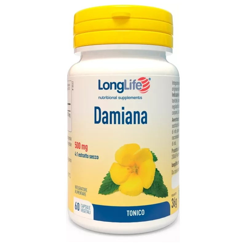Ingredienti Damiana foglia (Turnera diffusa Wild.) e.s. (4:1), maltodestrina, antiagglomeranti (magnesio stearato e biossido di silicio vegetali). Capsula di origine vegetale in idrossipropilmetilcellulosa.