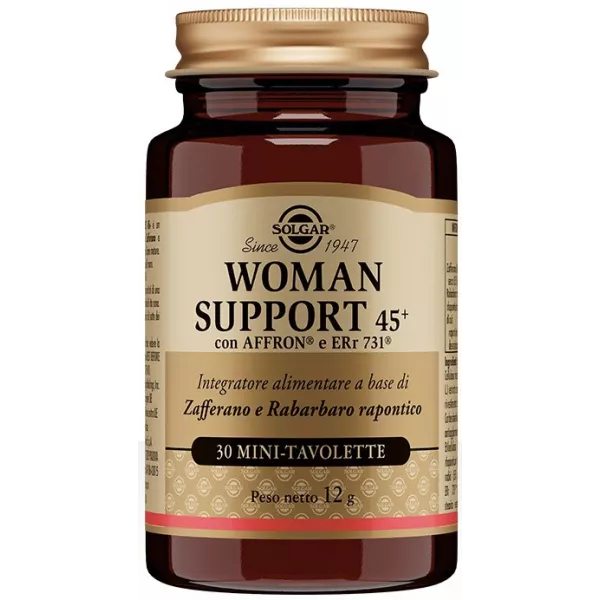 Descrizione Integratore alimentare contenete gli estratti di zafferano e di rabarbaro rapontico (ERr 731) che offrono un supporto vegetale per le donne over 45.