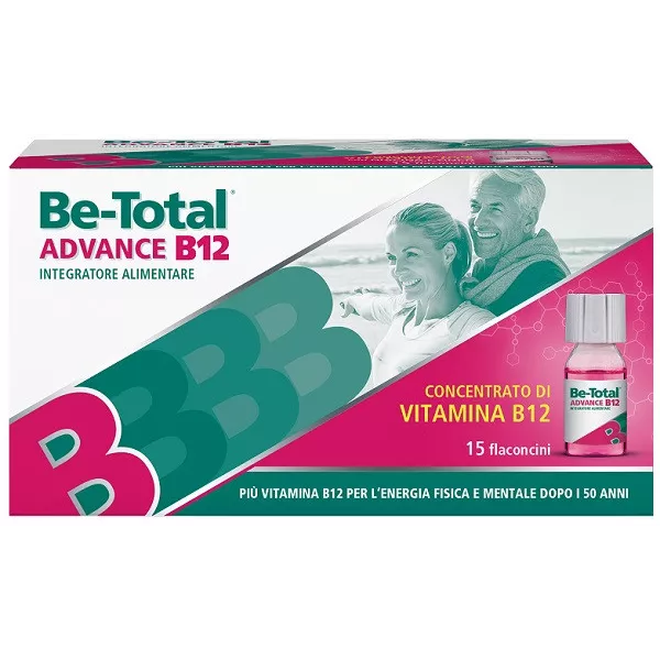 Be-Total Advance B12 si presenta in flaconcini di soluzione bevibile con tappo serbatoio. Niacina e zinco sono contenuti nel tappo serbatoio, mentre la vitamina B12 si trova nel liquido.