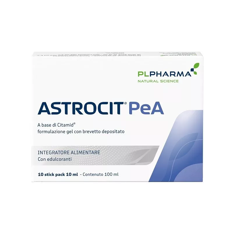 Astrocit PeA presenta un’associazione di citicolina-PeA-zinco (Citamid) in formulazione gel con brevetto depositato che favorisce il completo assorbimento e la massima biodisponibilità dei principi attivi veicolati. La formulazione gel in stick pack bevibili garantisce un’ottima palatabilità e la massima compliance del paziente.