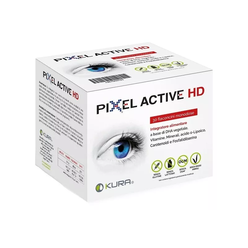Ingredienti Acqua, DHA algale polvere 10% incapsulato (da microalga Schizochytrium sp.), lutepure (Tagetes erecta L., capitula) tit. 5% luteina, tit. 1% zeaxantina, acido alfa-lipoico, vitamina C (da acido L-ascorbico), zinco (da gluconato di zinco); aroma: mango, pesca; vitamina E (da DL-alfa-tocoferile acetato 50%), fosfatidilserina; addensante: carbossimetilcellulosa sodica; conservante: sorbato di potassio; niacina (da acido nicotinico), selenio (da selenio L-metionina), rame (da gluconato di rame), vitamina B5 (da acido pantotenico); agente acidificante: acido citrico; emulsionante: glicerolo vegetale 99,7%; vitamina B6 (da cloridrato di piridossina); edulcorante: sucralosio; vitamina B1 (da cloridrato di tiamina), vitamina B2 (da riboflavina), vitamina B12 (da cianocobalamina).