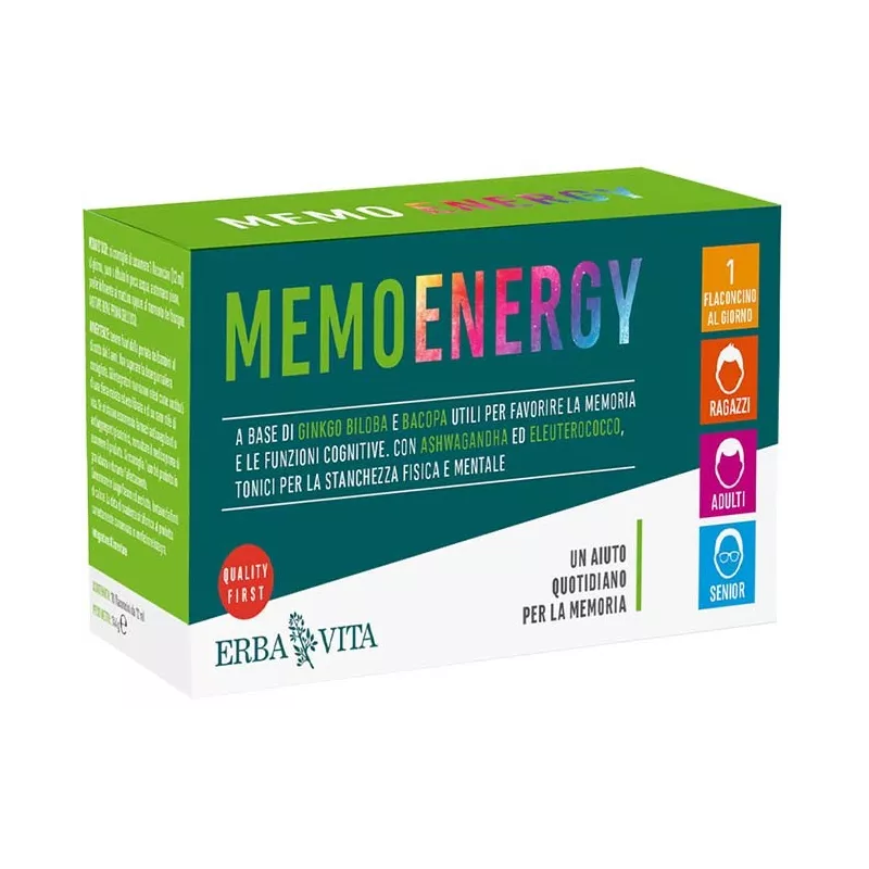 Descrizione Integratore alimentare a base di Ginkgo biloba, Bacopa, Ashwagandha ed Eleuterococco; utile come supporto quotidiano per la memoria e le funzioni cognitive.
