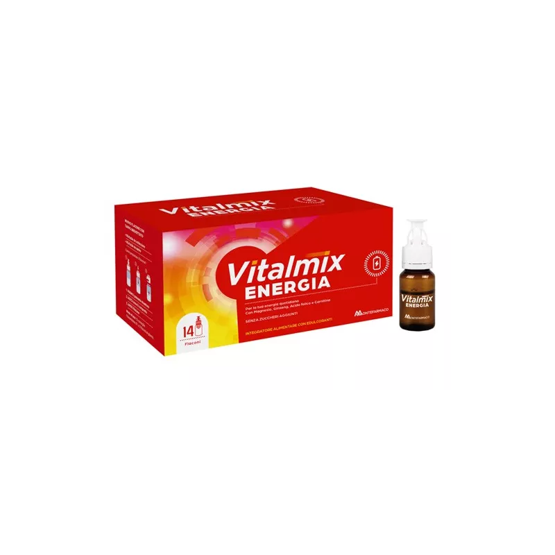 Flacone: acqua depurata, magnesio citrato, ginseng (Panax Ginseng C.A. Meyer, acqua, alcool elitico) radice estratto idroalcolico, L-camitina tartrato, aroma; addensante: gomma di xanthan; aroma; conservanti: sorbato di potassio, benzoato di sodio; acidificante: acido citrico; edulcoloranti: sucralosio; glicosidi steviolici da stevia.