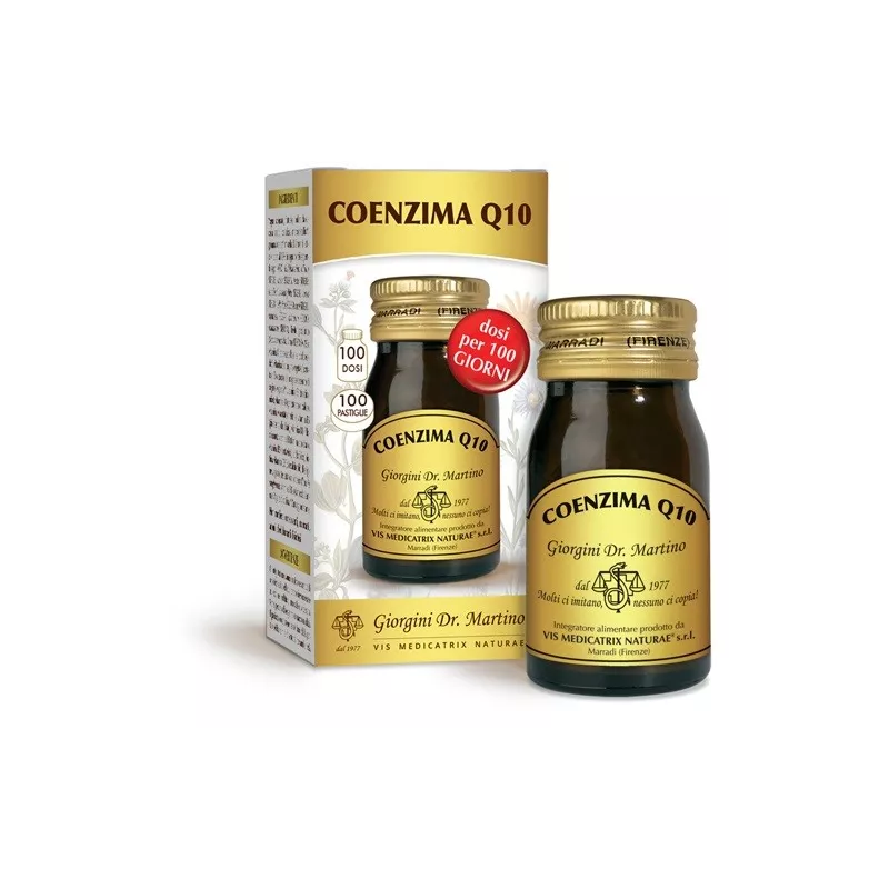 Descrizione Integratore alimentare di coenzima Q10, noto anche come vitamina Q o ubiquinone, termine quest’ultimo legato alla sua distribuzione "ubiquitaria" all’interno di ogni cellula dove è coinvolto nel funzionamento dei mitocondri per la produzione energetica.