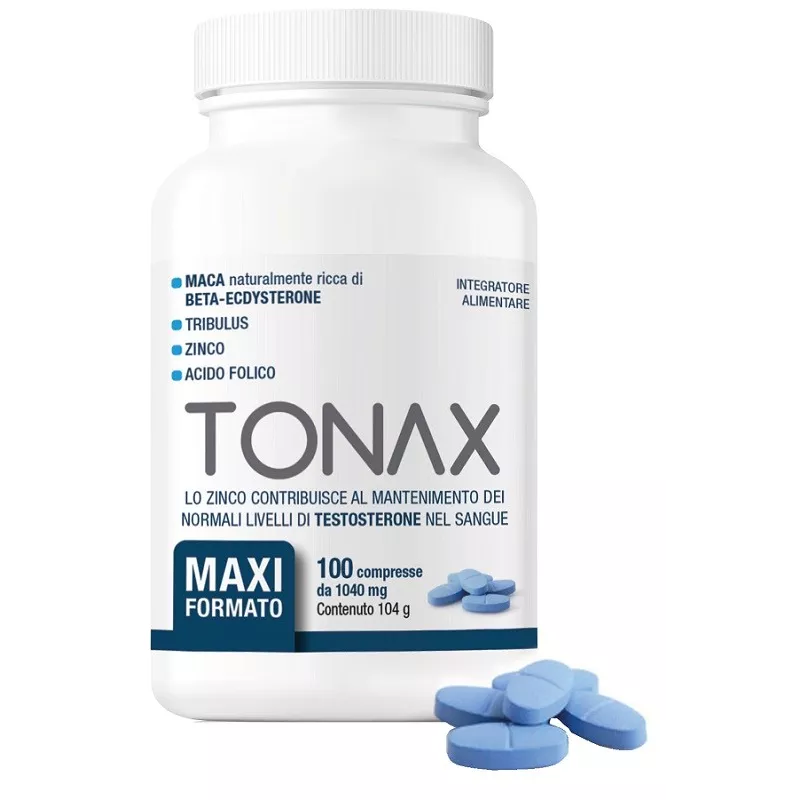 Ingredienti Agenti di carica: cellulosa, calcio fosfato; maca andina (Lepidium meyenii Walp.) radice e.s. tit. 1,5% beta-ecdysterone; agenti antiagglomeranti: mono- e digliceridi degli acidi grassi, sali di magnesio degli acidi grassi, biossido di silicio; tribolo (Tribulus terrestris L.) frutto e.s. tit. 40% saponine, zinco (zinco gluconato), licopene da Solanum lycopersicum 10%, vitamina D (colecalciferolo), vitamina B6 (piridossina cloridrato), vitamina B9 (acido folico), vitamina B12 (cianocobalamina); agenti di rivestimento: idrossipropilmetilcellulosa, talco, calcio carbonato, polietilenglicole, glicerolo, blu indigotina.