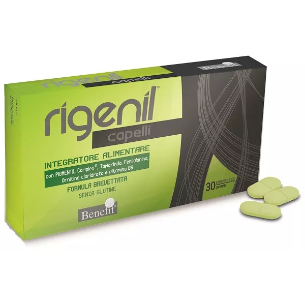 Integratore alimentare con PIGMENTIL Complex, tamarindom fenilalanina, ornitina cloridrato e vitamina B6.
