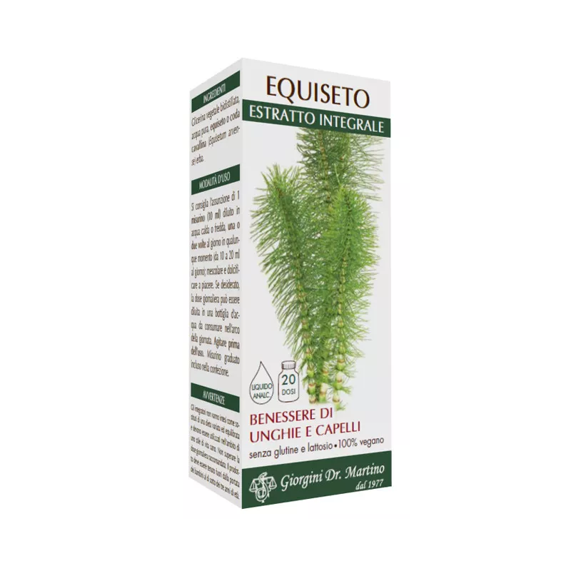 Descrizione L'equiseto coadiuva il benessere di unghie e capelli, favorisce il trofismo del tessuto connettivo e promuove il drenaggio dei liquidi corporei e la funzionalità delle vie urinarie.