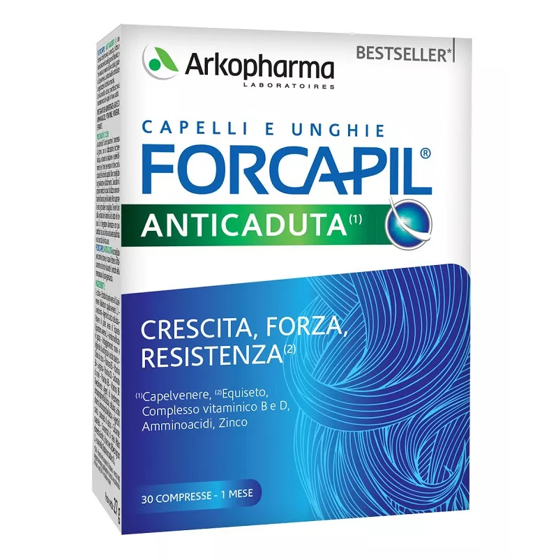 Ingredienti L-cistina, estratto di parte aerea di capelvenere (Adiantum capillus-veneris L.), L-metionina; agente di carica: cellulosa; polvere di parte aerea di equiseto (Equisetum arvense L.), amido modificato di patata; antiagglomeranti: mono- e di-gliceridi di acidi grassi, acido stearico; ossido di zinco, vitamina B5, vitamina B6, L-arginina, vitamina D3, carbonato di rame, vitamina B8, vitamina B9; agenti di rivestimento: idrossipropilmetilcellulosa, cellulosa, acido stearico, idrossipropilcellulosa; agente di carica: carbonato di calcio; colorante: caramello; concentrati di mela (Malus domestica Borkh.), ribes nero (Ribes nigrum L.) e ravanello (Raphanus sativus L.).