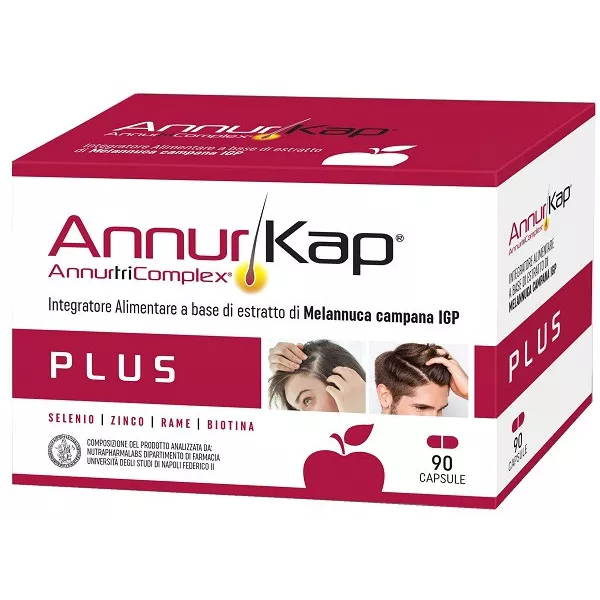 Descrizione Integratore alimentare a base di AnnutriComplex Plus, un fitocomplesso di melannurca titolato in procianidina B2 arricchito in rame, biotina e selenio da L-selenometionina, con zinco. La melannurca è una varietà di mela IGP della Campania ad alto contenuto di procianidine. Selenio e biotina contribuiscono al mantenimento di capelli normali. Il selenio contribuisce, inoltre, alla protezione delle cellule dallo stress ossidativo.