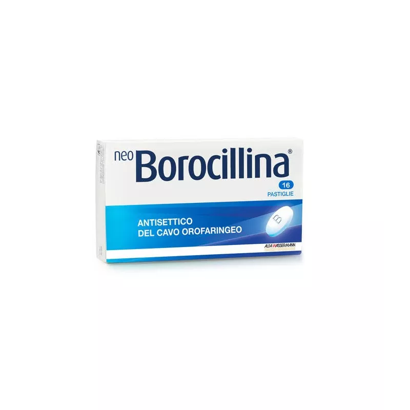 Neo Borocillina pastiglie contiene i principi attivi 2,4 diclorobenzil alcool e sodio benzoato ed appartiene ad una categoria di farmaci detti antisettici (antibatterici) del cavo orofaringeo (bocca e gola), utilizzati per la cura dei sintomi delle malattie infiammatorie della bocca e della gola.