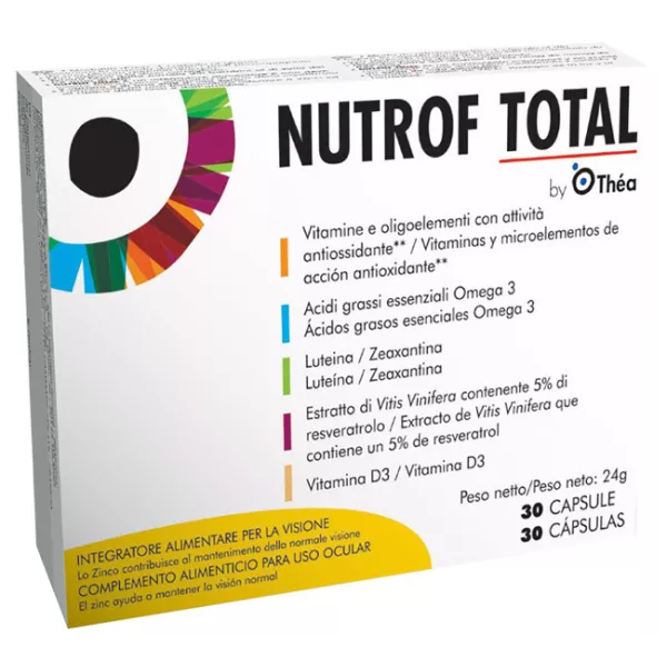 Avvertenze Non superare la dose consigliata Tenere fuori dalla portata dei bambini al di sotto dei tre anni di età NUTROF TOTAL è un integratore alimentare e non deve essere inteso come sostitutivo di una dieta equilibrata e varia e di uno stile di vita sano.
