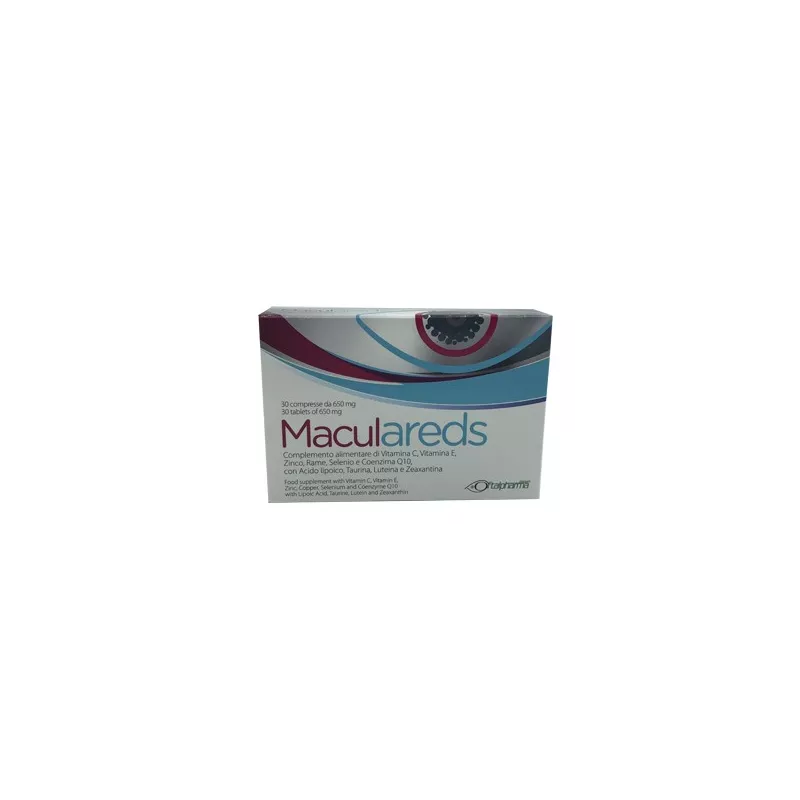 Ingredienti Agenti di carica: cellulosa microcristallina, calcio fosfato bibasico; vitamina C (acido ascorbico) protetta tit. 97,5%, taurina, tagete capitula (Tagetes erecta L.) e.s. tit. 20% luteina, zinco solfato, acido alfa lipoico, vitamina E acetato (DL-alfa-tocoferilacetato), tagete capitula (Tagetes erecta L.) e.s. tit. 10% zeaxantina; agente antiagglomerante: carbossimetilcellulosa sodica reticolata; coenzima Q10, rame solfato, seleniometionina; agenti antiagglomeranti: magnesio stearato vegetale, biossido di silicio.