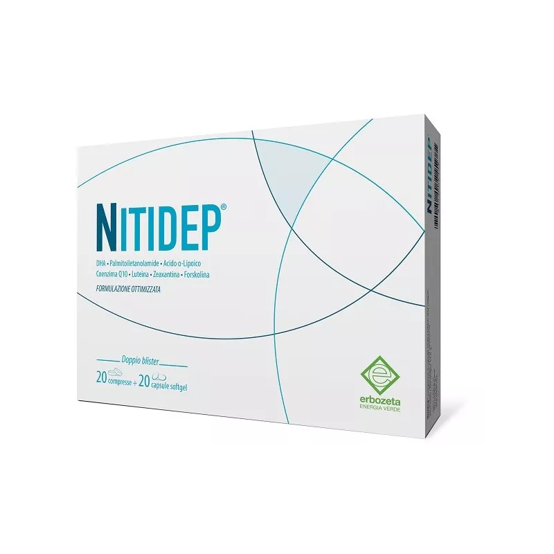 Ingredienti Ingredienti per compressa: palmitoiletanolamide,acido alfa-lipoico; agenti antiagglomeranti: carbossimetilcellulosa sodica reticolata, biossido di silicio, acidi grassi; agenti di carica: fosfato dicalcico, cellulosa; coenzima Q10, idrossipropilcellulosa; agenti di rivestimento: idrossipropilmetilcellulosa, acidi grassi, cellulosa; tagete (Tagetes erecta L.) capitoli e.s. tit. 20% luteina e 2,5% zeaxantina, Coleus [Coleus forskholii (Willd.) Bricq.] radice e.s. tit. 10% forskolina, tagete (Tagetes erecta L.) capitoli e.s. tit. 10% zeaxantina; coloranti: indigotina, riboflavina.