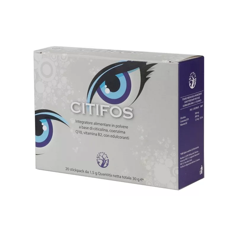 Descrizione Integratore alimentare in polvere a base di citicolina, coenzimaQ10, vitamina B2, con edulcoranti.