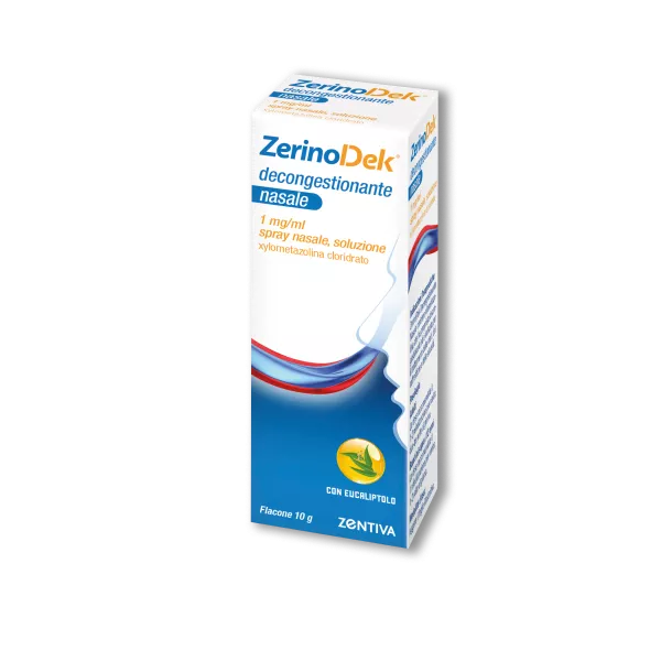 ZerinoDek Decongestionante Nasale contiene xilometazolina che ha proprietà decongestionanti ed è indicata per il trattamento delle riniti, del raffreddore e delle sinusiti.